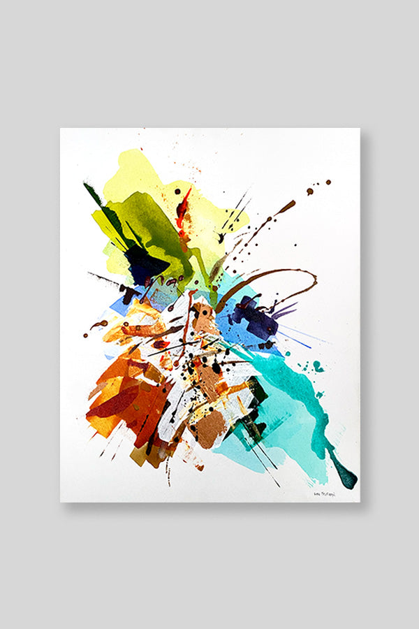 Airy brushwork and luminous tones of turquoise, coral, and yellow make Levity a joyful reflection on freedom and lightness. The flowing forms suggest uplift and creative spirit.