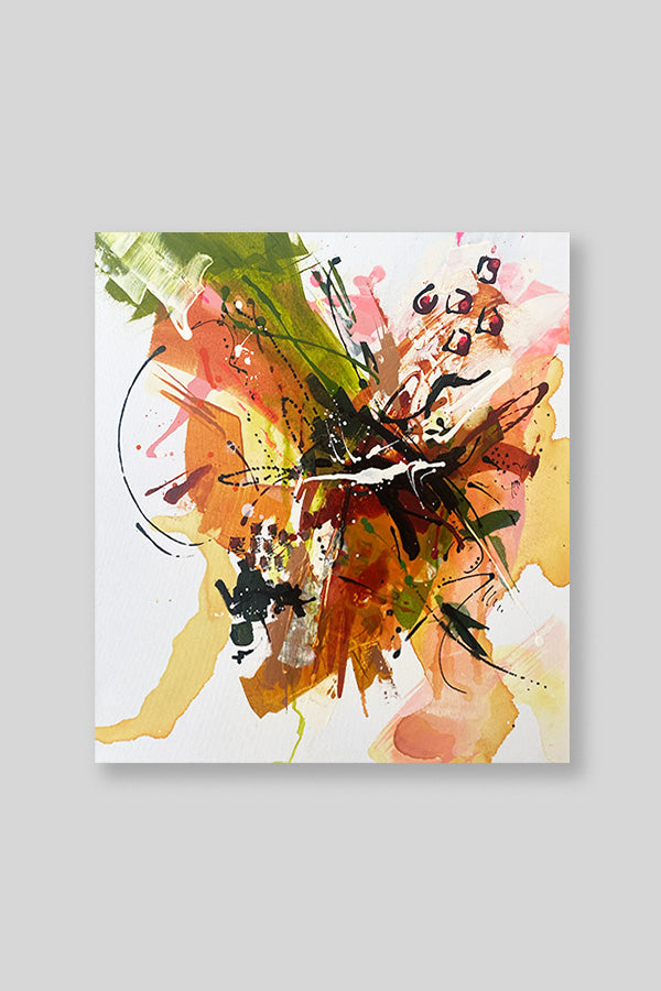 A visual explosion of oranges, greens, and golds, On the Fray captures the creative tension of transformation. Layered motion and bold brushwork express resilience and renewal—perfect for statement walls and dynamic modern art collections.