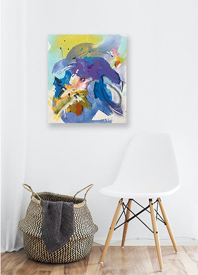 Dreamlike layers of purples and blues drift across the canvas in Purple Haze. This ethereal abstract explores the harmony between clarity and mystery—perfect for interiors that crave both color and calm.